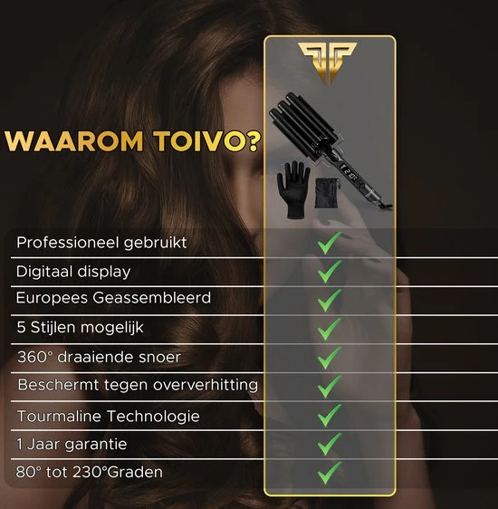 Wil jij glanzende beach waves, maar krijg jij dit ook nooit gedaan met een “normale” krultang? Ben je op zoek naar een eenvoudige en snelle manier van krullen zonder dat het je haar beschadigt? Wil jij binnen 5 minuten af zijn van futloos haar? Dan is de TOIVO PRO Care+ Golvenkrultang perfect geschikt voor jou!